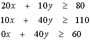 Die Firma „Friss dich reich GmbH“ stellt Fertiggerichte her. Heute soll sie einem Kunden ein Pilzgericht liefern. Der Kunde möchte, dass pro Gericht mind. 80 g Pfifferlinge, 110 g Stockschwämmchen und 60 g Steinpilze enthalten sind. Die Firma hat zwei Sorten Mischpilze vorrätig, von denen jede Packung folgende Gewichtsanteile von jeder Pilzsorte enthält: